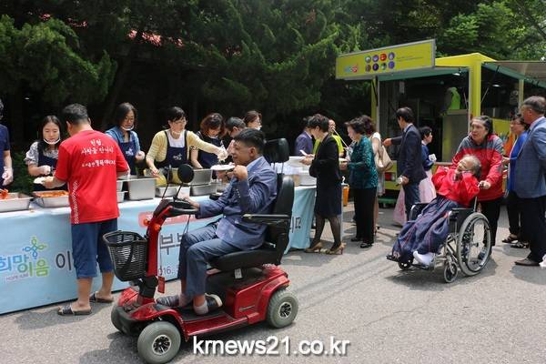 희망이음 이용석 이사는 “희망이음과 깊은 인연을 맺고 있는 홀트일산복지타운에서 오랜만에 탄생한 아름다운 부부의 결혼식을 축하하기 위해 밥차가 출동했다”며 “많은 제약을 이겨낸만큼 행복한 모습으로 살아갈 부부의 앞날을 응원한다”고 말했다.