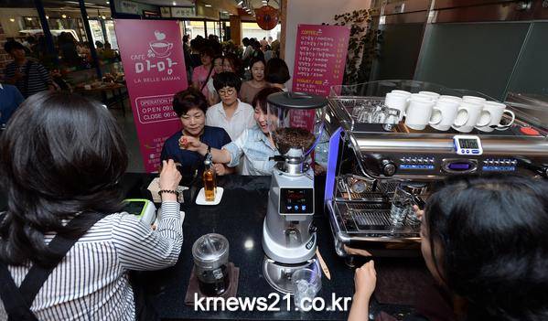 송정1동주민센터 1층 로비에 문을 연 카페 마망에는 바리스타 교육을 마친 비혼모 3명이 근무한다. 수익금은 이들을 돕는 기금으로 활용하고, 더 많은 비혼모들이 바리스타 자격증을 취득해 일자리를 갖도록 뒷받침할 계획이다.