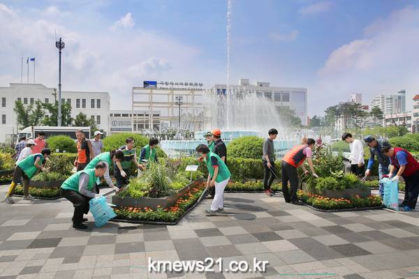이날 대청소는 문화전당, 숙박업소 주변, 도심밀집지역 이면도로, 뒷골목 등에 방치된 쓰레기를 치우고 「내 집(직장, 점포) 앞 내가 쓸기」 주민참여 캠페인과 종량제봉투 사용 및 쓰레기 분리배출 홍보를 병행 실시했다.
