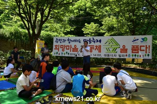안산시(시장 제종길)는 지난 6월 25일 세월호 피해지역인 안산시 고잔동 대동15차 놀이터에서 제종길 안산시장과 지역 시의원, 주민 등 100여 명이 참석한 ‘희망마을, 공동체 숲을 품다’ 행사를 개최했다.
