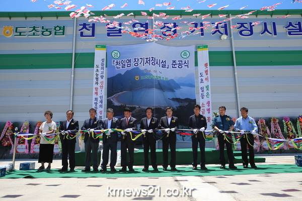 신안군 도초농협(조합장 김경철) 천일염 장기저장시설 준공식이 14일 오전 11시 신안군수, 도의원, 군의원, 조합원 등 지역주민 500여명이 참석한 가운데 성황리에 개최되었다.