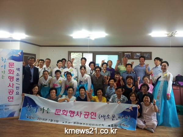이날 행사에는 마을 어르신 50여 명이 자리해, 주민자치센터 회원들의 색소폰과 민요 공연을 감상했다.