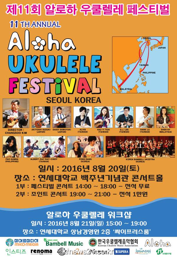 8월 20일(토) 오후 2시부터 밤 9시까지 연세대 100주년 기념관에서 제 11회 알로하우쿨렐레페스티벌이 열린다.