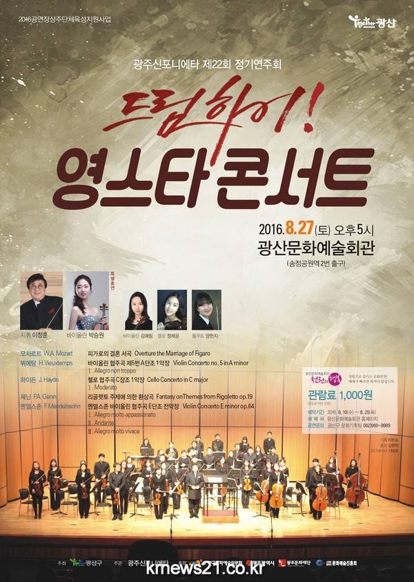 광주신포니에타가 오는 27일 오후 5시 광산문화예술회관에서 ‘드림하이! 영스타콘서트’를 갖는다. 이번 공연은 프로뮤지션과 협연할 기회를 우리 지역 음악 영재에게 제공하기 위해 마련한 것.