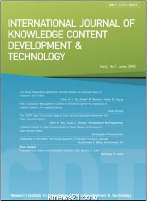 문헌정보학적 측면에서의 콘텐츠 생성·관리·제공(검색 포함) 분야의 콘텐츠 연구 분야를 다루는 IJKCDT는 2011년 6월 창간되어 매년 두 차례 발간되고 있다.