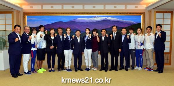 올해 여름을 더욱 뜨겁게 달구며 시민들에게 감동과 희망을 안겨준 광주출신 리우올림픽 참가 선수단이 환영행사가 2일 시청 3층 대회의실에서 열렸다.