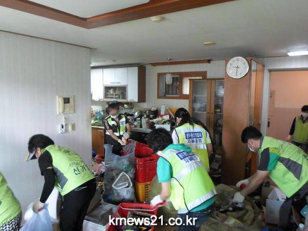 광주 광산구 신가동(동장 황만주) 공동체가 저장강박 가구 청소에 나섰다. 청소 봉사에는 지역사회보장협의체, 우산동 자원봉사캠프, 광산구장애인복지관, 광산구장애인가족지원센터, 바라밀실허바우스와 주민센터 공직자 30여 명이 함께했다.