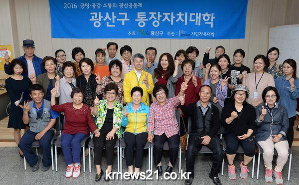 제3기 광산구 통장자치대학이 지난 28일 수료식을 가졌다. 광산구가 주최하고 시민자유대학이 운영한 통장자치대학에는 지역에서 활동하는 통장 50명이 함께 했다.
