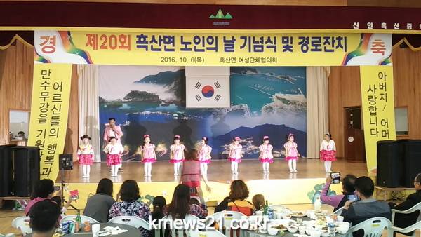 흑산어린이집 재롱잔치공연을 시작으로 흑산초등학교 학생들의 가야금 연주, 민요 및 가요 공연 등 다양한 볼거리로 흥겨운 시간을 보냈다. 또한, 여성단체협의회에서 푸짐한 음식을 준비하여 대접하는 등 10월 노인의 날 취지에 맞게 어르신들을 위한 풍성하고 흥겨운 행사가 추진됐다.
