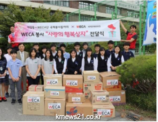 역삼중(윤시섭 교장) 국제봉사동아리 학생들이 7일 국제 NGO 세계교육문화원 WECA(위카)와 함께 기부 물품 전달식 및 사랑의 티셔츠 만들기 봉사활동 시간을 가졌다.