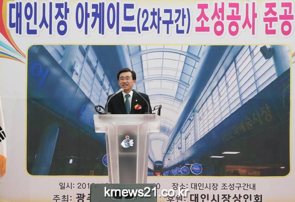 광주 동구(청장 김성환)가 10일 전통시장 시설현대화 사업의 일환으로 추진해 온 대인시장 2차 아케이드 준공식을 개최했다.