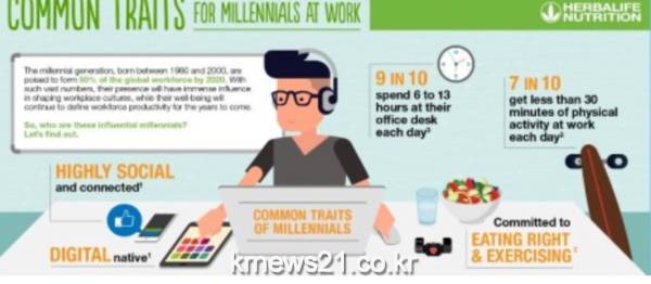 글로벌 뉴트리션 전문 기업 허벌라이프 (Herbalife)가 아태 지역 ‘밀레니얼 세대 직장인 설문조사(Millennials At Work Survey)[1]를 실시한 결과 아태 지역 젊은 직장인들이 근무 중 운동을 하고 싶으나 업무 환경으로 인해 어려운 것으로 나타났다.