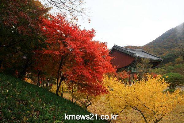 9월 상사화로 빨갛게 물들었던 불갑사는 10월 빨갛고 노란 단풍이 아름다운 곳이며 단풍 외에 보물 제830호 대웅전, 보물 제1377호 목조석가여래삼불좌상, 천연기념물 제112호 참식나무 자생 북한지대 등 여러 가지 보물들이 있는 곳이다.