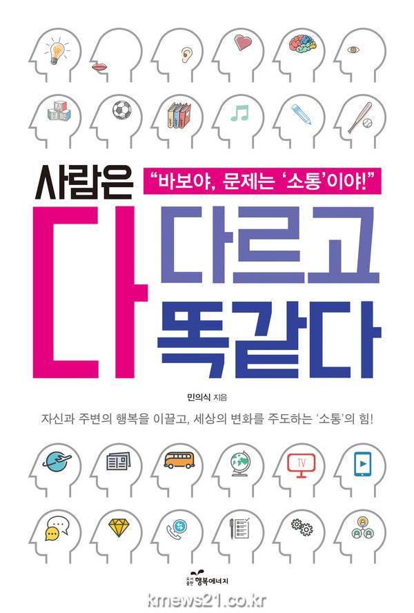 ‘사람은 다 다르고 다 똑같다’는 우체국시설관리단 경영전략실장으로 근무하고 있는 민의식 저자가 ‘소통’을 통해 자신의 행복한 삶을 도모함은 물론 그 주변, 나아가 세상의 행복을 이끄는 방안을 다양한 사례를 통해 제시한다. 다양성과 다름을 인정하고 이를 조화시키고 통합함으로써 가정과 학교, 직장, 사회 그리고 국가 내에서 소통을 도모하는 방안을 역사적, 인문학적으로 풀어나간다. 현재 우체국시설관리단 경영전략실장으로 재직 중인 저자가 직접 체득한 삶의 노하우 또한 책 곳곳에서 빛을 발하고 있다.