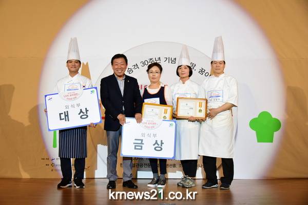 이번 대회의 외식부 대상은 고잔동 소재 홍푸(박규희)의 ‘황제도미’, 금상은 고잔동 소재 사조회 참치(정문석,최미경)의 ‘솔잎가루 참치탕수육’, 본오2동 소재 더앤더(신영숙)의 ‘오리+약밥’ 출품작이 각각 수상해서 현판과 업소탐방 등을 지원 받게 된다.