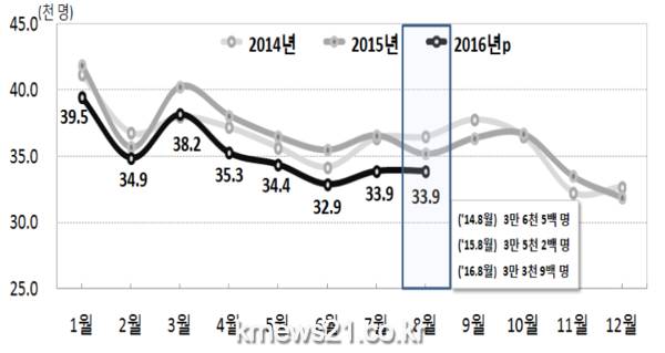 1∼8월 누계로는 18만6800명으로 0.8% 증가했다.