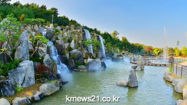 자연석 폭포는 지속가능한 친환경 시설로 공원을 찾는 시민들에게 안전하고 쾌적한 공원 환경을 제공하고자 총사업비 56억원을 투입해 총 길이 114미터, 높이 17미터 국내 최대의 자연석으로 조성됐다.
