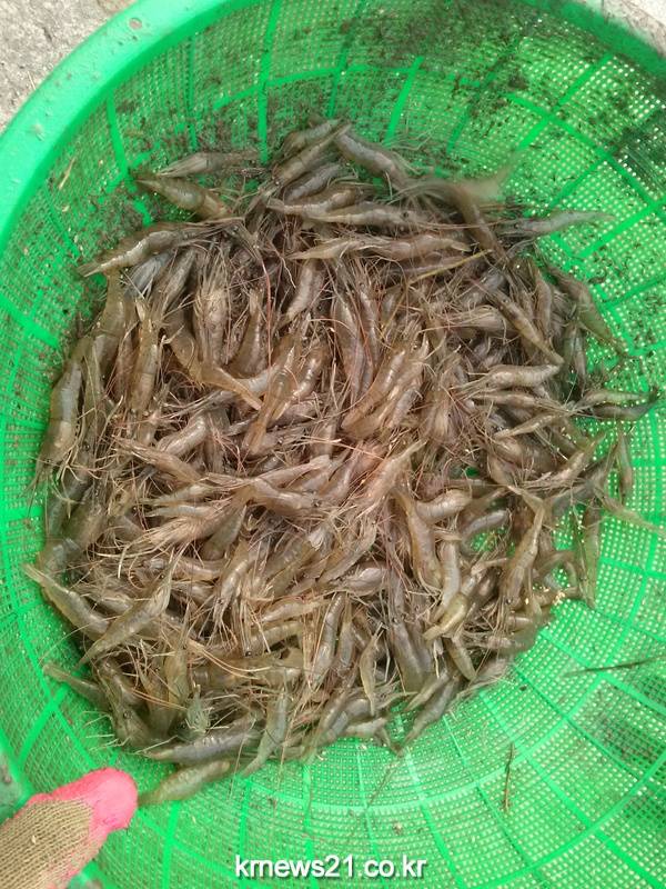 전라남도해양수산과학원(원장 최연수)은 장성읍에서 친환경 벼농사 농법과 함께 추진하는 큰징거미새우 현장 적용 시험양식을 통해 250kg을 첫 수확했다고 1일 밝혔다.