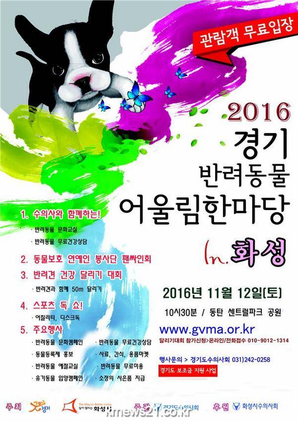 ‘2016 경기 반려동물 어울림 한마당’이 12일 화성시 동탄 센트럴파크에서 개최된다.