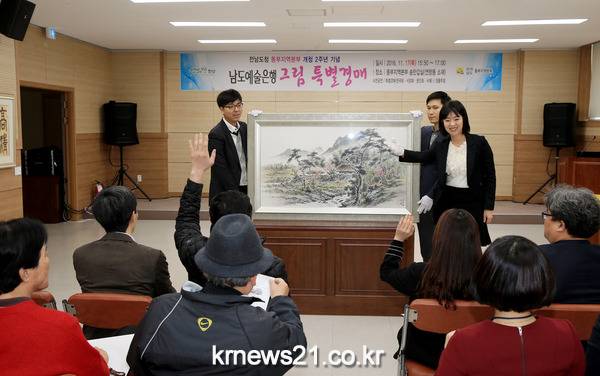 전라남도 동부지역본부는 17일 그림 애호가, 지역주민 등 100여 명이 참석한 가운데 남도예술은행 그림 특별 경매를 개최했다.
