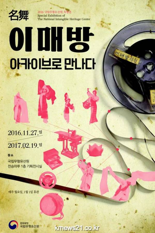 문화재청 국립무형유산원(원장 강경환)은 「名舞(명무), 이매방 아카이브로 만나다」 기획전을 오는 26일 개막식을 시작으로 27일부터 2017년 2월 19일까지 국립무형유산원 전승마루 1층 기획전시실(전라북도 전주시)에서 개최한다.