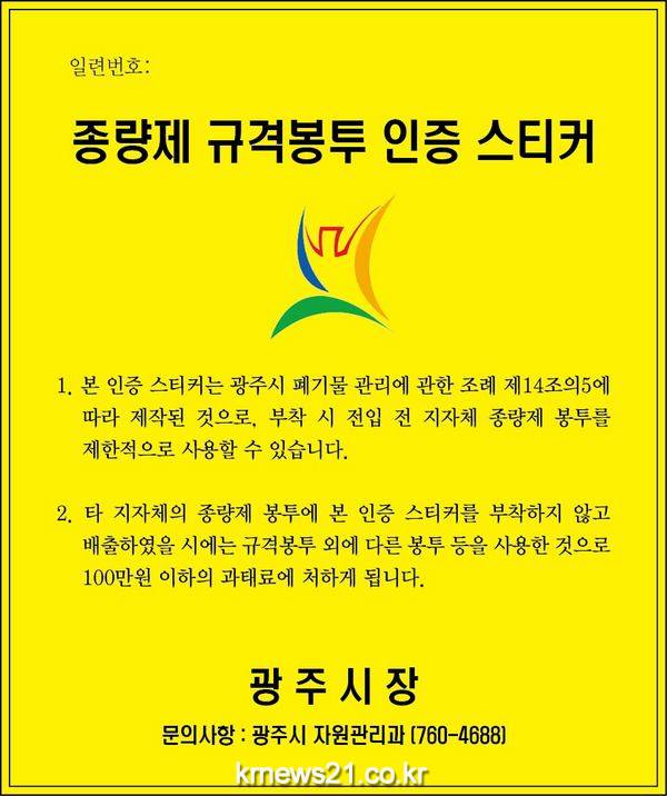 시는 관련 규정 개정을 통해 광주시로 전입한 시민들이 이사 오기 전 주소지에서 구입한 종량제봉투에 “인증 스티커”를 부착하여 배출하면 수거할 수 있는 근거를 마련했다.