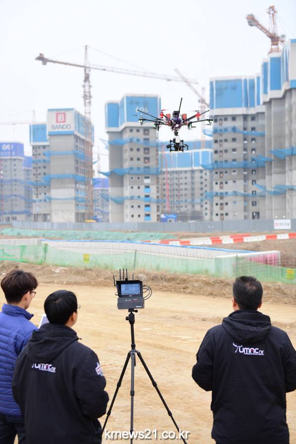 시는 18일 송산그린시티 공사현장 1km 상공에 드론을 띄우고 야적물질 덮개 미설치, 수송차량의 세륜기 미 통과 및 적재함 미 밀폐 등 위법사항 적발에 필요한 영상을 수집해 드론을 이용한 사전 단속시스템 활용 가능성을 확인했다.