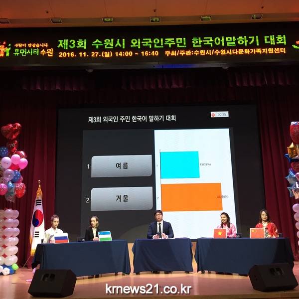 수원시는 27일 시청 대강당에서 ‘제3회 수원시 외국인 주민 한국어 말하기 대회’를 열었다.