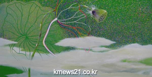 이번 전시에는 ‘오혜련의 Beautiful World’로 연꽃을 주제로 한 15점의 작품을 감상할 수 있다.