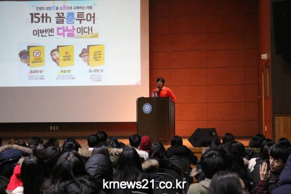 11월 28일 신창연 씨의 특강에서는 “열정이 있다면 무모한 도전은 없다”라는 주제로 진행됐다. 직원3명과 단돈 250만원으로 여행박사를 창업해 수천억대의 매출을 기록하는 회사로 성장시킨 신창연은 ‘도전’을 주제로 생각의 틀을 깨는 강연을 통해 청소년들에게 신선한 도전의식을 심어주었다.