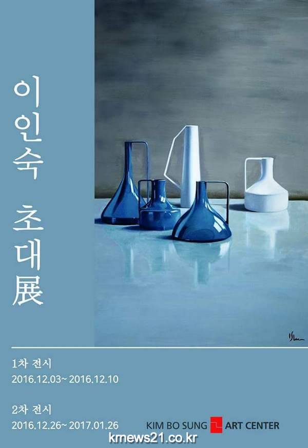 이인숙 작가는 정물(靜物)을 주제로 서울 종로구 평창동 금보성 아트센터에서 2016년 12월 3일(토)~10일(일)까지 1차 개인전을 열고, 2016년 12월26일(월)~2017년 1월26일(목)까지 2차 전시를 다시 진행한다. 이인숙 작가의 정물화는 기물, 과일, 꽃, 화분, 병 등 다양한 소재를 고정적이며 안정된 모습으로 화폭에 담아 심리적 편안함과 정갈함을 동시에 전해 준다. 화려한 색감은 사용하지 않았지만 고급스런 이미지로 남아 시선을 집중시키는 묘한 매력을 지니고 있다.