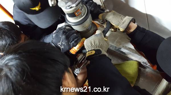 음식점에서 발생한 기계 손 끼임 사고 현장에 출동해 요구조자 박 모 씨(여, 20세)를 안전하게 구조했다고