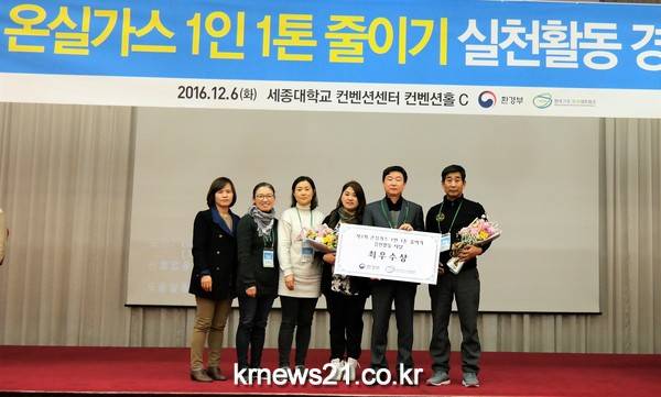 지난 12월 6일 서울 세종대학교 컨벤션홀에서 환경부, 한국기후․환경네트워크가 주최한 ‘제7회 저탄소생활 실천 국민대회’에서 안성시 환경과와 안성시지속가능발전협의회가 ‘안성시 탄소사냥 실천사업’이라는 주제로 단체부문에서 1등인 '최우수상'의 영예를 안았다.