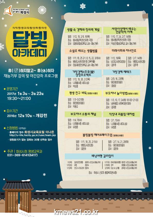 화성시가 직장인을 위한 야간강좌 ‘달빛아카데미’ 개설하고 12일부터 수강생 모집에 나섰다.