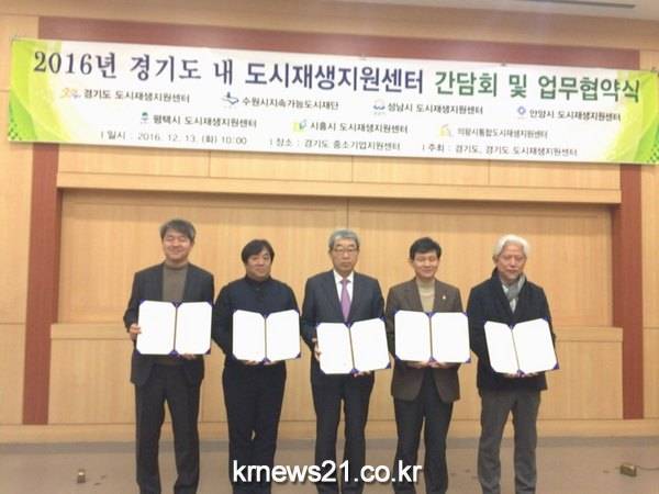 (재)시흥시 도시재생 지원센터는 지난 13일 경기 중소기업종합지원 센터 희망 실에서‘경기도 도시재생 지원센터와 업무협약을 가졌다.