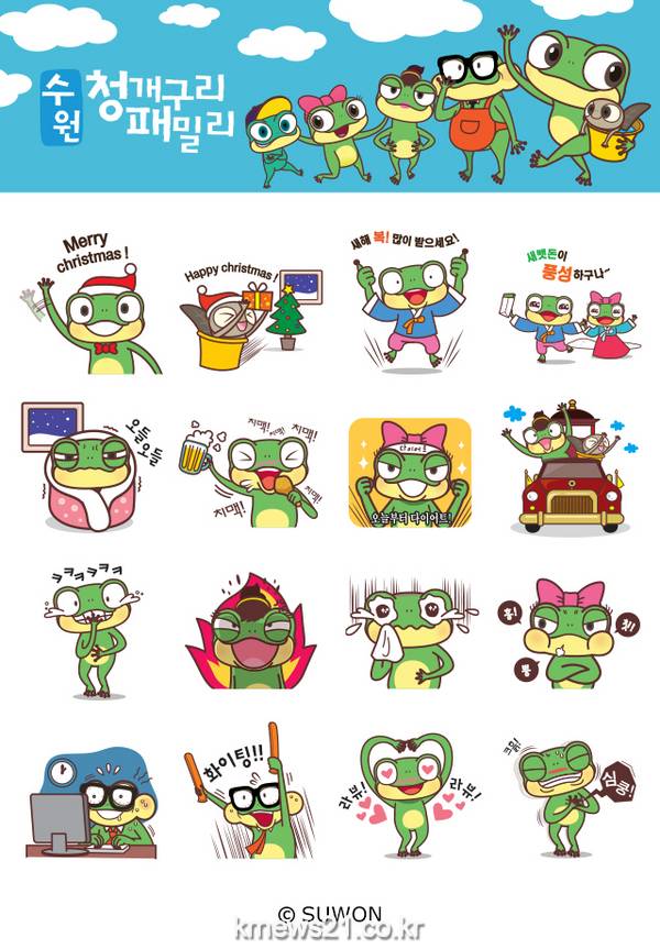 수원시가 청개구리 캐릭터 ‘수원이’의 카카오 톡 이모티콘을 출시했다.