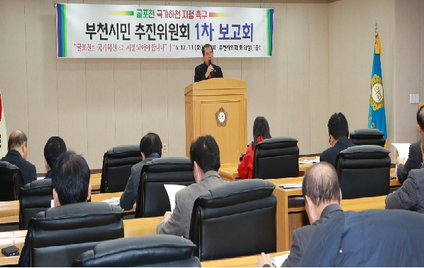 굴포천국가하천부천시민추진위원회(공동위원장 민맹호 부천시의회 부의장, 김관수 부천시의회 의원,이하 추진위)는 지난 13일(화) 부천시의회 대회의실에서 추진위원과 시민 100여 명이 참석한 가운데 굴포천 국가하천 지정 촉구 보고회를 가졌다.
