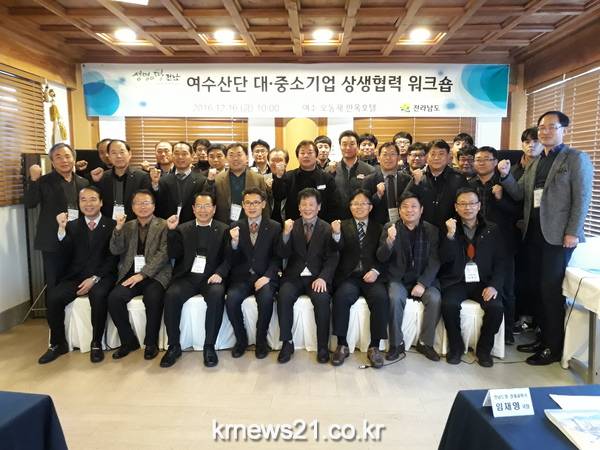 전라남도는 16일 여수 오동재 한옥호텔에서 도, 여수시, 유관기관 및 기업 관계자 등 50여 명이 참석한 가운데 ‘여수산단 대‧중소기업 상생협력 워크숍’을 개최했다.