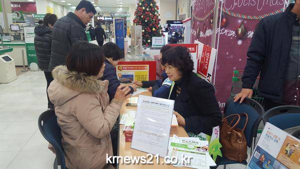 참가자들은 시민들에게 발열덧신을 나눠주며 내복 입기, 실내온도 18~20℃ 유지하기 등 저탄소생활 실천수칙을 알렸다.