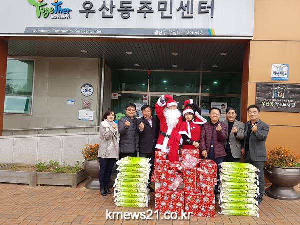 투게더광산 우산동지역사회보장협의체(이하 ‘우산동 지사협’) 위원들이 지난 21일 산타클로스로 나섰다. 우산동 지사협 위원들은 이날 산타클로스 옷을 입고 한부모 가정 10세대를 방문해 크리스마스 선물을 전달했다.