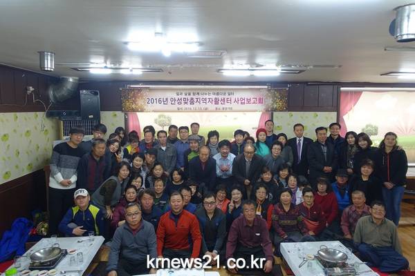 안성맞춤지역자활센터는 23일(금) 자활근로 참여자들과 함께 사업보고대회를 개최하여 2016년 자활근로참여자들의 사업단 결과보고와 자활사업 동영상 감상, 자활기업(맞춤다육) 창업과정보고 등 2016년을 함께 마무리하는 자리를 가졌다.
