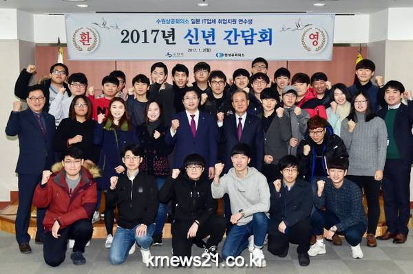 2일 수원상공회의소에서 열린 일본 IT업체 취업 지원(K-무브) 연수생 간담회에서 염 시장은 연수생들에게 “꿈과 희망을 구체적으로 만들고, 기회가 왔을 때 자신을 적극적으로 드러내라.”고 조언했다.