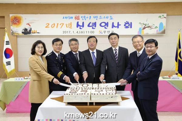 김철주 무안군수는 신년 인사말을 통해 “2017년 새해에는 기관․사회단체가 원활한 소통과 화합을 통해 상생 발전할 수 있기를 기원하며, 진취적인 자세로 ‘대한민국에서 사람이 가장 살고 싶은 무안’을 만들 수 있도록 모두의 힘을 모아줄 것”을 당부했다.