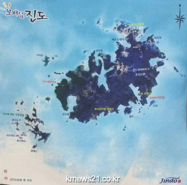 6일 진도군에 따르면 최근 귀여운 진도개 캐릭터 인형과 1970년대 간척사업 전의 진도 옛 모습이 담긴 손수건, 메모꽂이 등 3종을 만들었다.