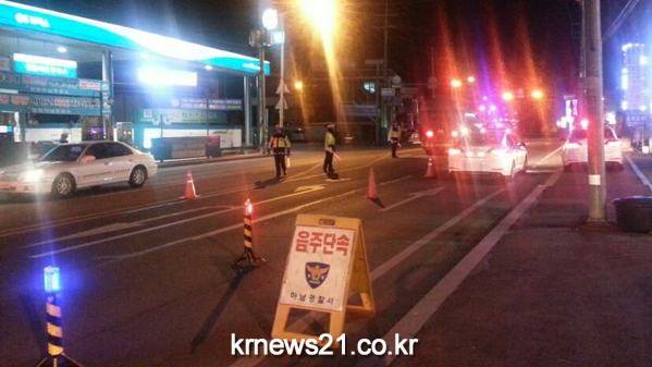 하남경찰서(경찰서장 정경택)은 연말연시 음주교통사고 증가에 따라 건전한 교통문화 정착을 위한 「음주운전 특별단속 활동」을 펼치고 있다. 언제 어디서나 음주운전은 단속 될 수 있다는 인식 확산을 위해 20분∼30분 간격으로 시간 불문, 장소 불문하여 강력 음주운전 단속 활동 중이다.