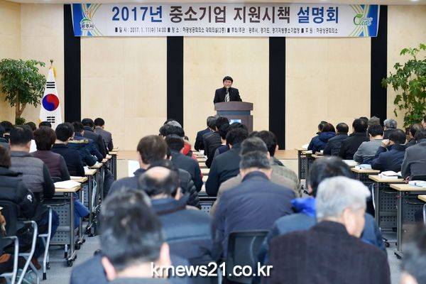 광주시는 11일 오후 하광상공회의소 대회의실에서 하광상공회의소 등 기업지원 관련 단체장, 중소기업 및 소기업·소상공인 등 300여명이 참석한 가운데 “2017년 중소기업 지원시책 설명회”를 개최했다.