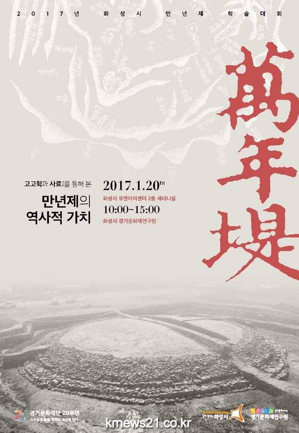 화성시가 오는 20일 오전 10시부터 유앤아이 센터 2층 세미나실에서 ‘고고학과 사료를 통해 본 만년제의 역사적 가치’란 주제로 학술대회를 개최한다.