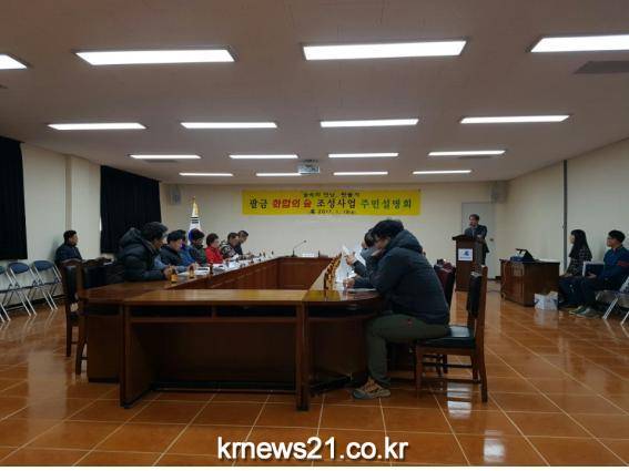 이번 설명회는 팔금 주민들을 대상으로 앞으로 조성될 화합의 숲에 대한 사업 목적과 추진과정 및 계획 등을 상세히 설명하고 다양한 지역주민들의 의견을 듣는 순서로 진행됐다.