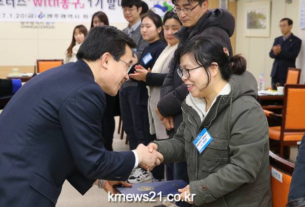 광주 동구(청장 김성환)는 지난 20일 동구 SNS서포터즈 ‘WITH 동구’가 발대식을 갖고 본격적인 활동에 들어갔다고 밝혔다.