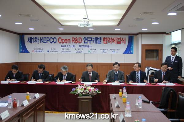 한국전력(사장 조환익)은 지난 1월 31일 빛가람혁신도시에 있는 본사에서 원광전력(주)을 비롯한 울산과학기술원 ,아주대, 성균관대, ㈜아이티언,테크빌교육(주) 6개 전문기관과 'Open R&D 연구개발 협약'을 체결했다고 1일 밝혔다.